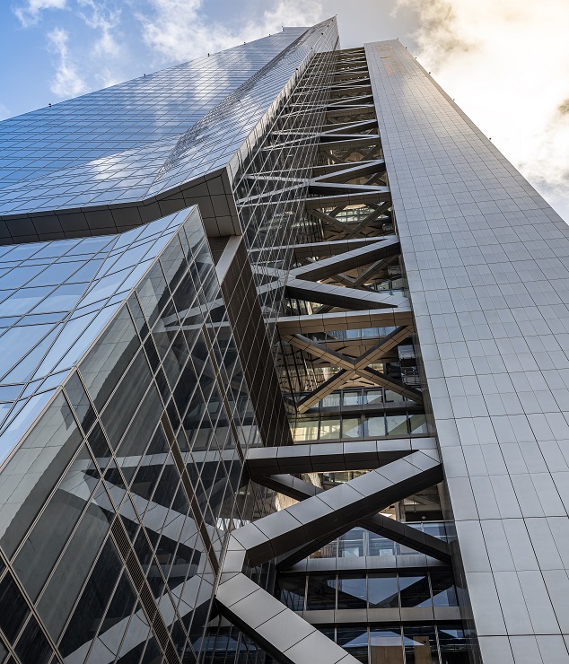 建筑高度:300米 项目设计:KPF建筑事务所 幕墙类型:单元式幕墙、屋顶百叶、半单元玻璃幕墙、拉索幕墙等