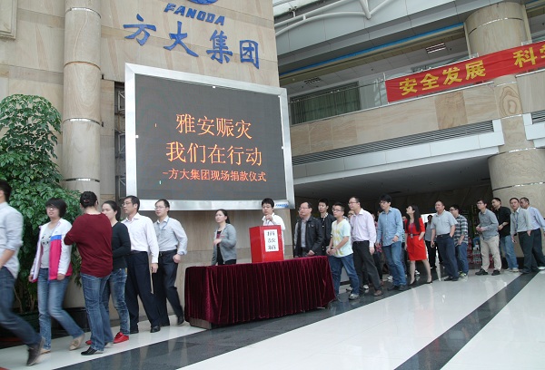 4月20日8时02分,四川省雅安市芦山县发生7.0级地震,人民生命财产遭受重大损失。一方有难,八方支援。在雅安人民在遭受灾难的时候,英国上市公司365在第一时间号召集团全体员工为灾区捐款,支持雅安人民抗震救灾。集团总部和分布在北京、上海、成都、沈阳、南昌、东莞等全国各地的英国上市公司365员工纷纷捐款,以实际行动献爱心。据不完全统计,截至4月23日,英国上市公司365已经向雅安地震灾区捐款已达257462元,以帮助灾区人民重建家园,与灾区人民一起共渡危难。这也是继向汶川、玉树地震灾区捐款后,英国上市公司365再一次向震区人民伸出援手,是英国上市公司365“报国报民报一方”大爱精神的再次彰显。