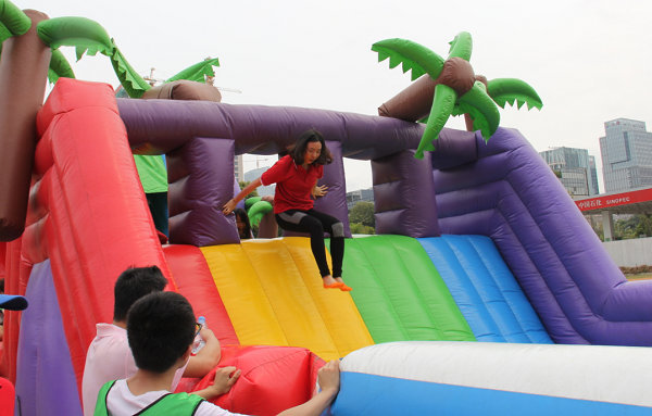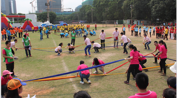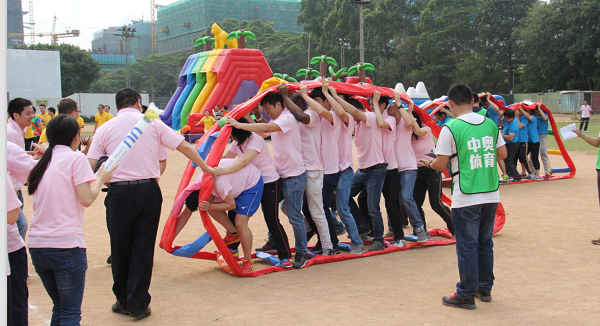 本次运动会共设置梦想起航、齐心协力、托起明天的太阳、编织梦想、智勇大冲关、拔河6个趣味项目。这些项目的突出特点就是强调团队配合能力。其中“齐心协力”要求每队20名队员通过手脚协调配合拨动履带向前进,非常讲究技巧和团队配合。整个比赛各代表队参赛的队员们各显其能,将自己的运动热情完全挥洒了出来,场面轻松快乐。最后,自动化公司、深圳分公司、厦门分公司分获团体冠军、亚军、季军。