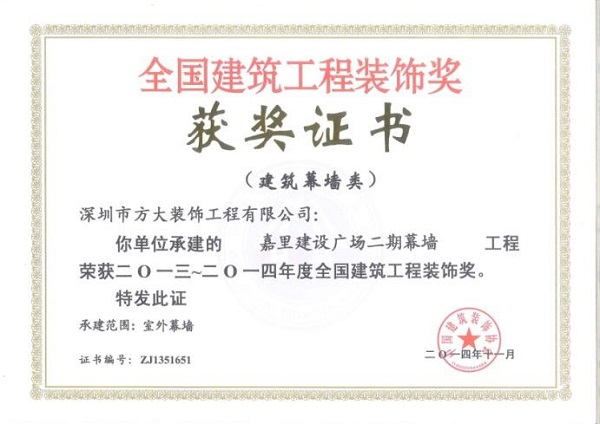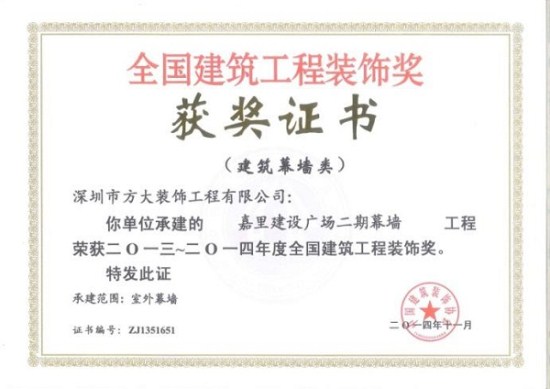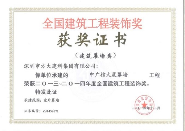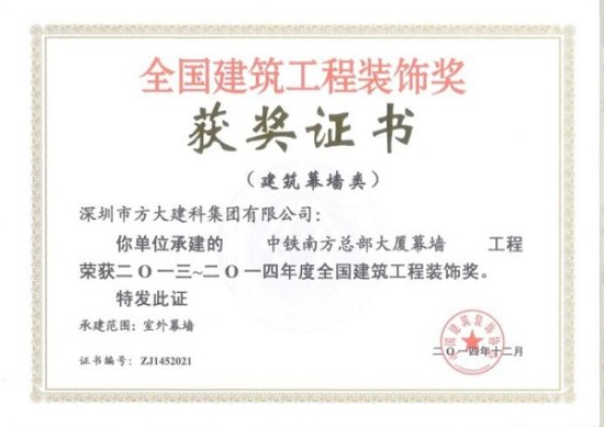 “2013-2014年度全国建筑工程装饰奖”获奖结果在北京揭晓,深圳市英国上市公司365建科集团有限公司荣获四项建筑幕墙类大奖,获奖项目分别为:中铁南方总部大厦幕墙工程、大连万达公馆1#楼幕墙工程、嘉里建设广场二期幕墙工程、中广核大厦幕墙工程。