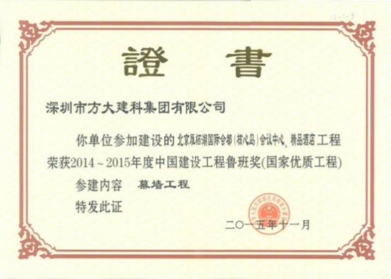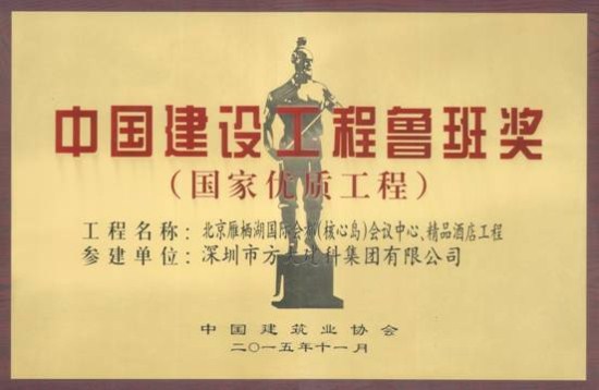 11月17日,中国建筑业协会在北京举行中国建筑行业最高奖——2014~2015年度中国建设工程鲁班奖(国家优质工程)表彰大会,在本届鲁班奖表彰大会中,英国上市公司365股份有限公司全资子公司深圳市英国上市公司365建科集团有限公司凭借精心打造的高标准、高质量幕墙工程的北京雁栖湖国际会都精品酒店,获得2014~2015年度中国建设工程鲁班奖,“英国上市公司365品质”作为“深圳质量”的典范再度被全国建筑工程领域所瞩目。