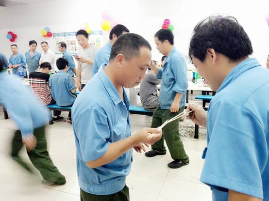 在员工享用美食与水果的同时,当晚现场进行了踩气球、夹传瓜子与纸杯传水三轮游戏,每个游戏都由寿星们自由组队参与。第一个游戏“踩气球”,两人三足需要高度的协调与配合,为了躲避对手突袭,寿星们上蹿下跳,左右摆动,动作滑稽,惹得全场哄堂大笑;第二个游戏“夹传瓜子”,大家争分夺秒往下一位队友手中输送瓜子,在输送的过程中如果瓜子不慎掉落只好重新开始,在围观人员的助威呐喊声中,寿星们加快步伐只为成功夹传更多的瓜子;最后一个游戏“纸杯传水”,要求选手们动作谨慎且快,配合度高,为把纸杯的水倒入队友的纸杯中时能够滴水不漏,大家的传输POSE千奇百怪,笑料百出,现场一片欢声笑语。