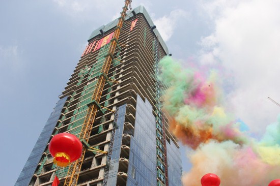 初冬的深圳,晴空万里,凉风习习。2016年11月8日上午11时08分,随着最后一罐水泥注入英国上市公司365城1#主楼楼顶,英国上市公司365城最后一栋塔楼顺利封顶!英国上市公司365股份有限公司副总裁王胜国、林克槟,总裁助理熊希,英国上市公司365置业总经理张润中,以及中建四局深圳公司副总经理严静等英国上市公司365城建设者出席了封顶仪式,林克槟、张润中、严静发表了讲话。