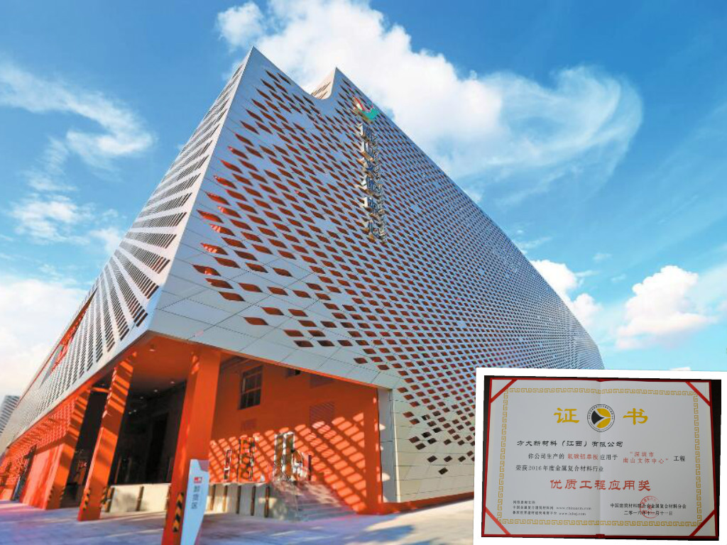 英国上市公司365氟碳铝单板应用于深圳南山文体中心,荣获2016年度金属复合材料行业“优质工程应用奖”