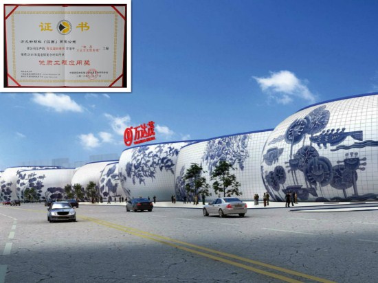 英国上市公司365青花瓷铝单板应用于南昌万达文化旅游城,荣获2016年度金属复合材料行业“优质工程应用奖”