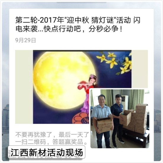 在英国上市公司365江西公司,9月28日、29日举行了一次别开生面的“迎中秋猜灯谜”线上活动。为了让公司员工感受到节日浓厚的气氛,同时又能搭建企业文化交流的桥梁,此次活动由传统猜灯谜改为微信猜灯谜方式进行。员工们通过关注公司微信公众号后,即可在线参与解答猜灯谜的活动。通过这次“迎中秋猜灯谜”活动,极大地激发了员工们关注公司微信公众平台的激情,也为员工们留下了一段难忘的节日回忆。