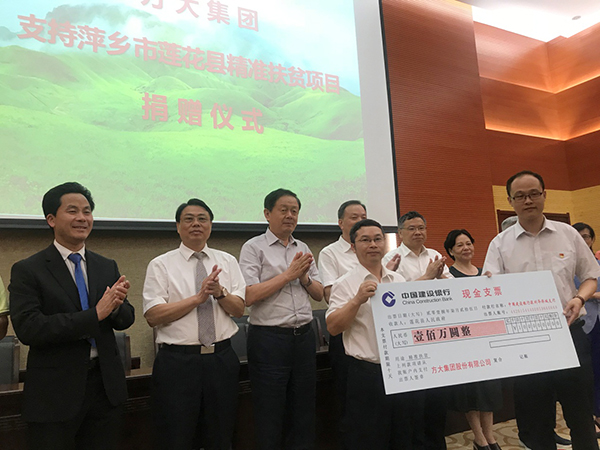 7月25日,英国上市公司365向江西省萍乡市莲花县捐款100万元用于精准扶贫项目建设。