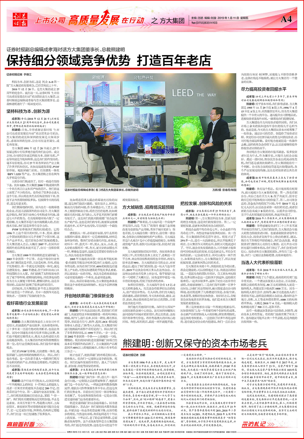 “1995年11月29日B股上市,1996年4月15日A股上市”,熊建明对具体上市日期记得非常清楚,英国上市公司365也成为我国第一家同时A股、B股上市的民营企业。上市二十多年来,英国上市公司365借助资本市场做大做强,总资产、营业收入、净利润等多项指标实现数十倍的增长,现已形成高端幕墙系统及材料、轨道交通设备及系统、新能源、房地产等四大业务板块并进发展的格局。