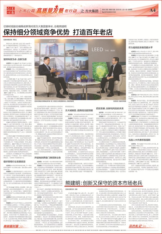 - 第四版稿件: 保持细分领域竞争优势 打造百年老店 熊建明:创新又保守的资本市场老兵