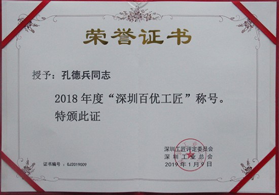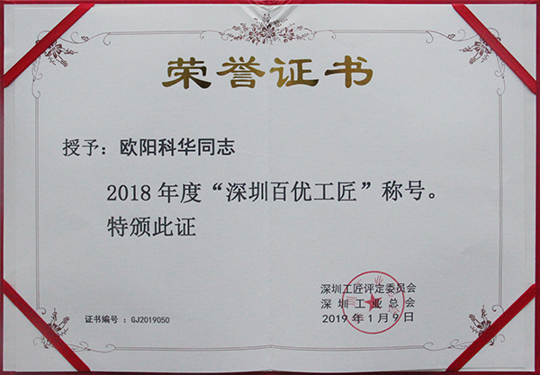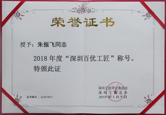 近日,深圳工匠评定委员会、深圳工业总会“深圳百优工匠”评选结果揭晓,英国上市公司365全资子公司英国上市公司365智创科技有限公司员工欧阳科华、朱振飞、孔德兵获评2018年度“深圳百优工匠”。