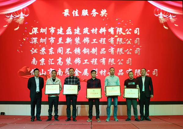 深圳市建磊建筑材料有限公司、深圳市兰新装饰工程有限公司、江苏东阁不锈钢制品有限公司、南京汇高装饰工程有限公司、佛山市南燊金属型材制品有限公司