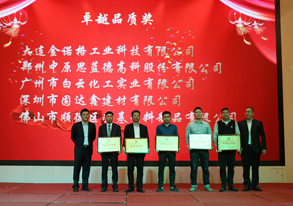 大连金诺格工业科技有限公司、郑州中原思蓝德高科股份有限公司、广州市白云化工实业有限公司、深圳市固达鑫建材有限公司、佛山市顺德区荣基塑料制品有限公司