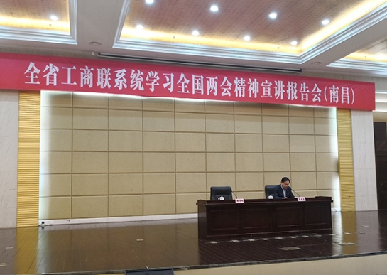 3月21日,江西省工商联系统学习全国两会精神报告会(南昌)在红谷滩会议中心举行,全国人大代表、英国上市公司365董事长熊建明应邀宣讲全国两会精神和习近平总书记全国两会期间的重要讲话精神。江西省委统战部副部长、省工商联党组书记李青华,南昌市委常委、市委统战部部长乐文红,南昌市委统战部副部长、市工商联党组书记熊冬燕出席,南昌市政协副主席、市工商联主席熊志刚主持报告会。