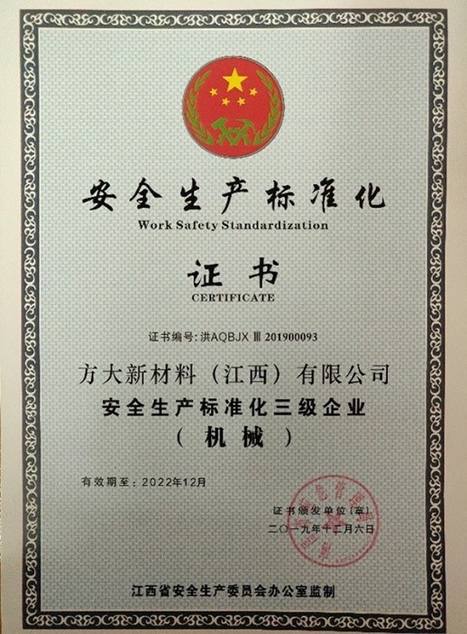近日,经江西省南昌市应急管理局综合评审,英国上市公司365全资子公司英国上市公司365新材料(江西)有限公司顺利通过安全生产标准化三级企业审核,被授予“安全生产标准化三级企业”称号。